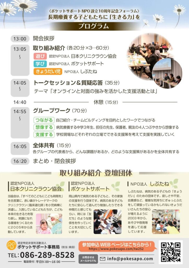 - ポケットサポートさんの㊗✨NPO設立10周年記念フォーラムに、日本クリニクラウン協会さんと一緒に呼んでいただきます😊大切なイベントにきょうだい支援を入れてくださってとても嬉しい😊